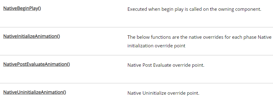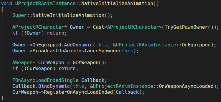 결국 BeginPlay를 대체할 함수가 필요했다. 그래서 NativeInitializeAnimation Function을 사용했다. 이 Function은 Anim Instance의 초기화 시점에 호출되기에 BeginPlay 시점에 생성되는 Anim Instance도 정상적으로 동작하게 되었다.